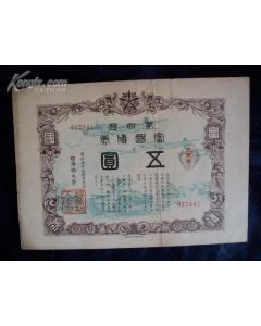 伪满洲国 第四回富国债券一张 康德10年 |