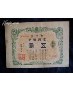 伪满洲国 第三回富国债券一张 康德10年 |