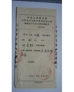 | 文革时期稀奇纸品-中国人民解放军石门县公安机关军事管制 |