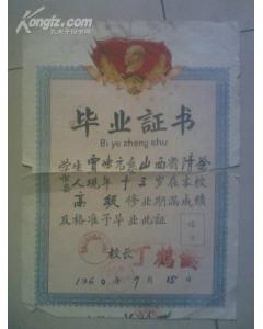 | 图书名称: 1960年 毕业证书 看图 已有人浏览 |